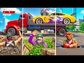 ВЫБИЛ 2 РАНДОМНЫЕ ТАЧКИ ИЗ ЛАКИ БЛОКОВ! СМОГУТ ЛИ ЗАБРАТЬСЯ ПО СТУПЕНЬКАМ ЛЕСТНИЦЫ? ЭКСПЕРИМЕНТЫ ГТА - ДЖЕЛ