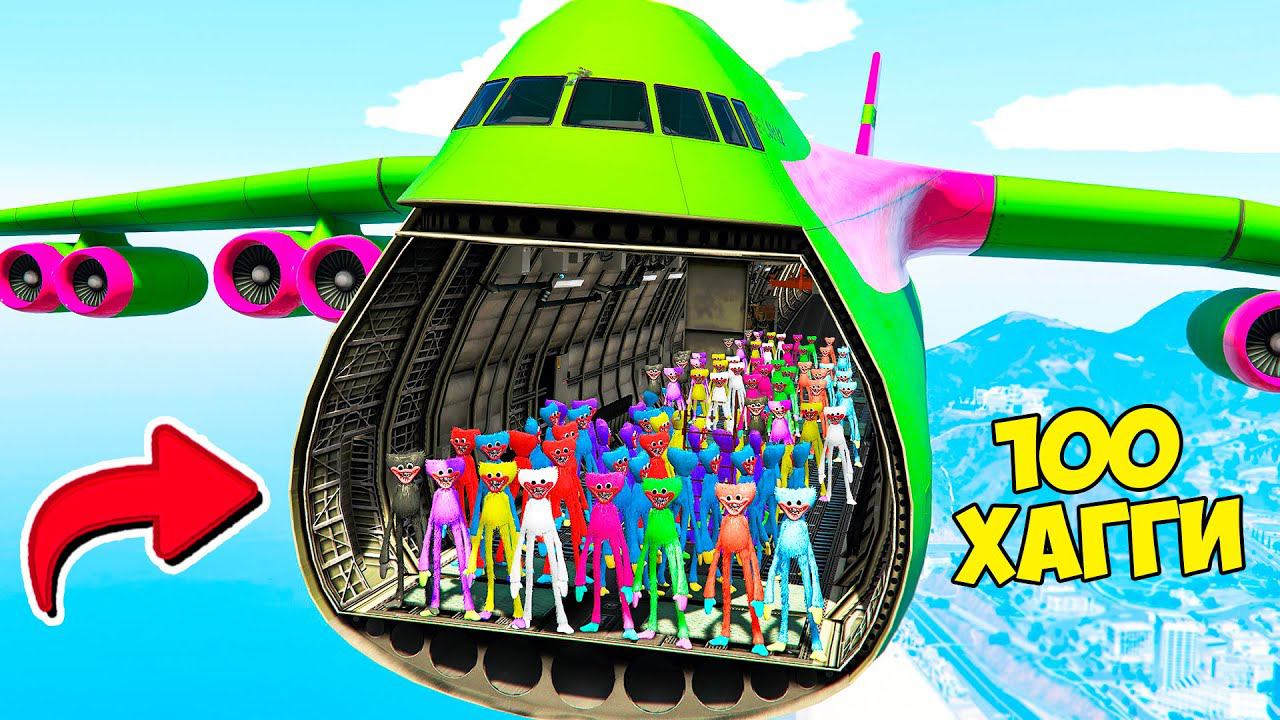 СМОГУТ ЛИ 100 ХАГГИ ВАГГИ УДЕРЖАТЬСЯ НА САМОЛЁТЕ в ГТА 5 МОДЫ! Poppy Playtime ОБЗОР в GTA 5 ВИДЕО